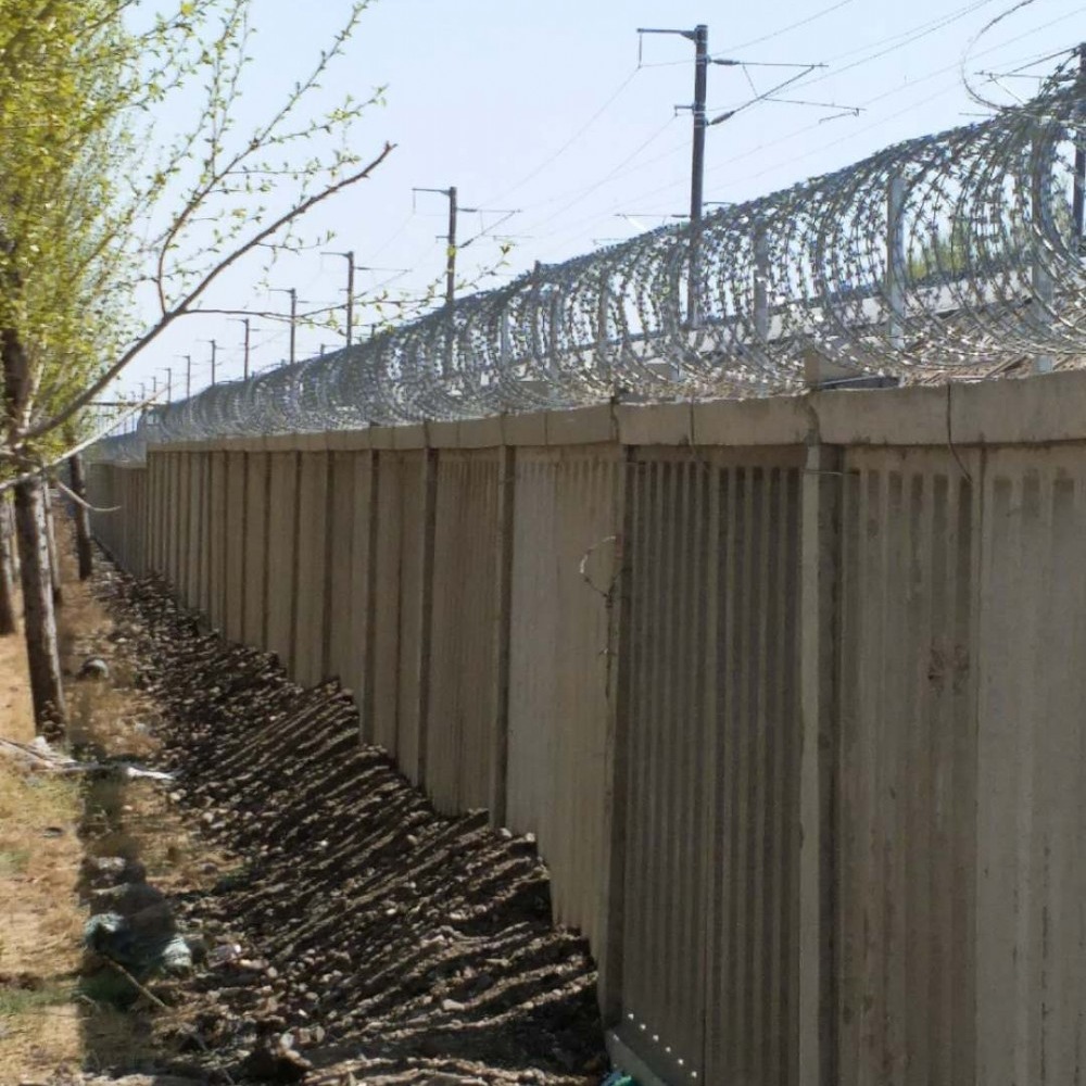 (1)刺絲滾籠應(yīng)進行熱鍍鋅處理,一般環(huán)境中鍍鋅量采用120g/m2,特殊環(huán)境中采用270g/m2。安裝刺絲滾籠時,刺絲滾籠與支架抱箍之間連接采用橫向刺絲和支架連接。一般交叉圈安裝間距為20公分,刺絲滾籠采用刀片刺繩繞圈后形成交叉圈,相鄰兩圈每隔120度用刺絲連接卡固定,張開后構(gòu)成蛇腹網(wǎng)狀,閉合直徑50公分,安裝好后圈徑不小于45公分.