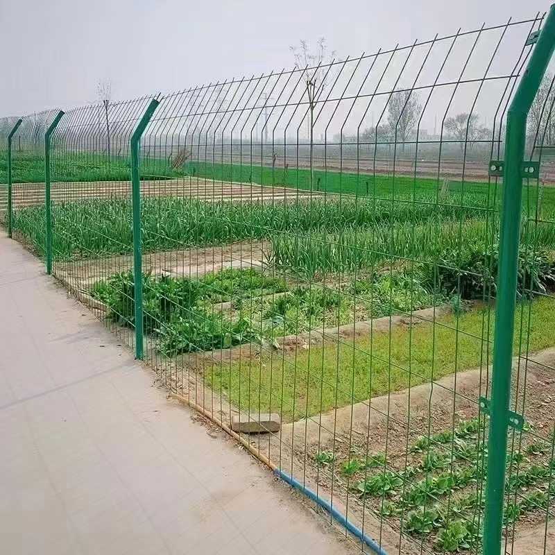 結構:低碳鋼絲焊接網片,雙邊穿絲連接立柱,表面熱鍍鋅 + 浸塑;常用高度 1.8m,立柱間距 3m,網孔 50×150mm,絲徑 3.8–4mm。